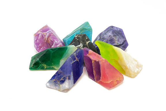Like natural gemstones, SoapRocks are unique - each one is different. Beautiful to behold and use, and with use, the soap slowly weathers away in your hands like a stone in a stream. It is a hybrid, dense glycerin soap that is made with extracts of the earth: Aloe, Calendula, Chamomile, Comfrey, Lavender, Vitamin E, Jojoba Oil, Olive Oil, Almond Oil. The light lather lifts very little oil off of the skin as it gently cleanses, leaving your skin soft and refreshed. Large assortment of colors and scents.