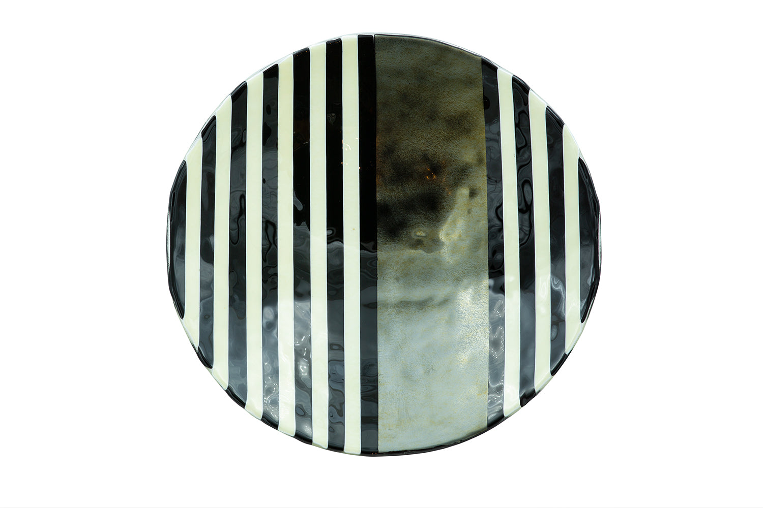 Bullseye glass that has been cold-worked and manipulated into its final form.