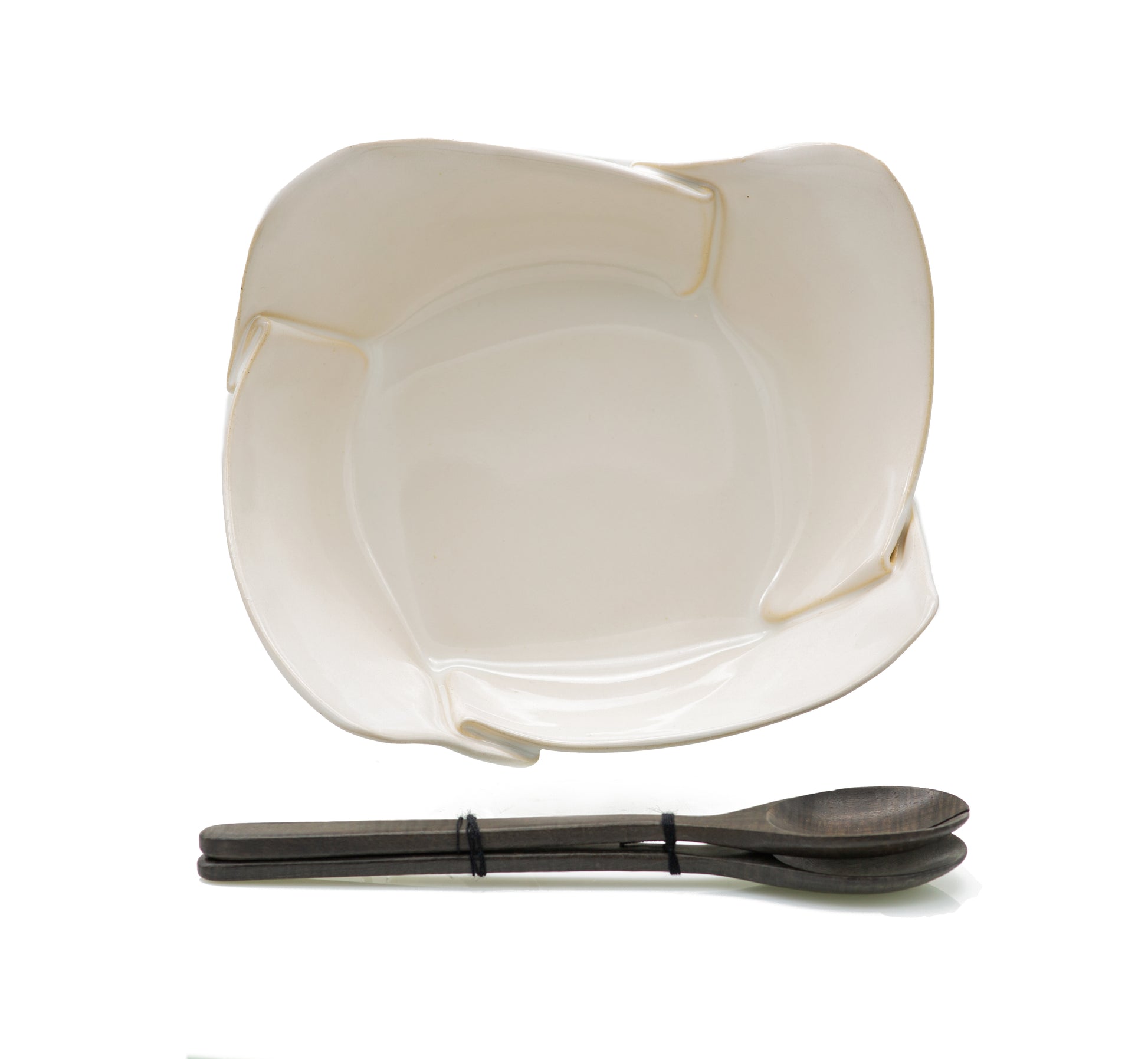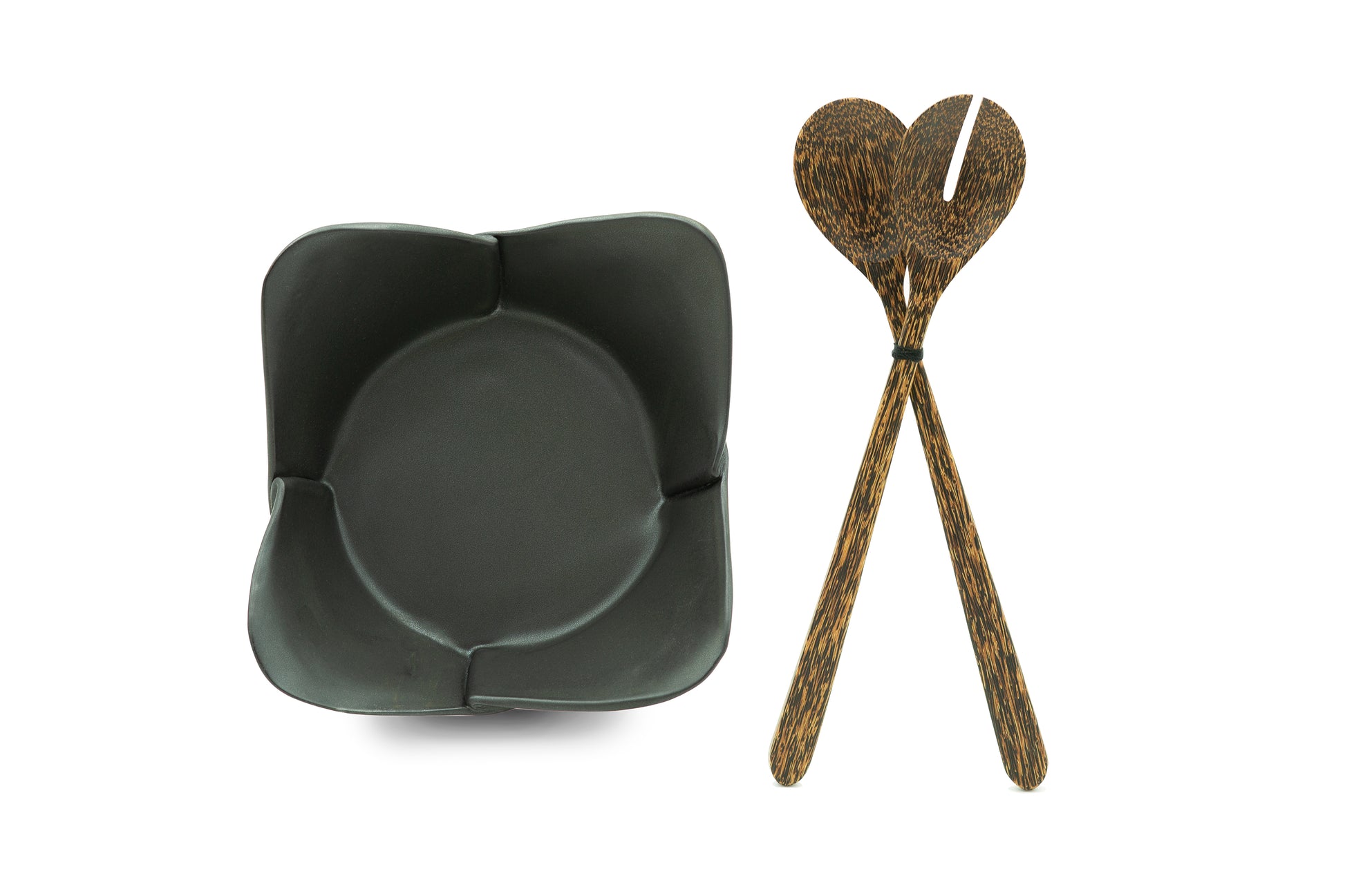 Fresh new design serves up side dishes with style. Black Palm wood servers included.