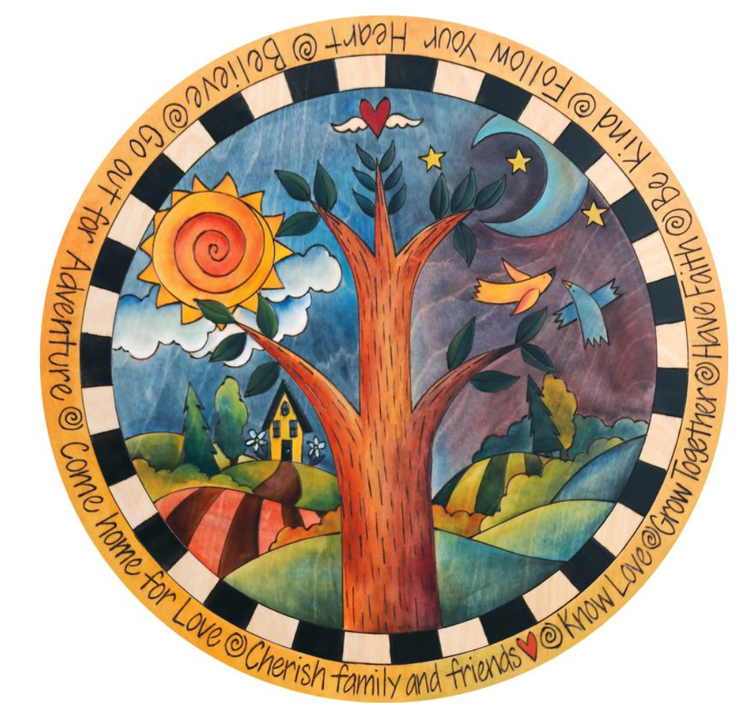 Focused on nature, the home, and love. This lazy susan's theme is all about family and friends.
