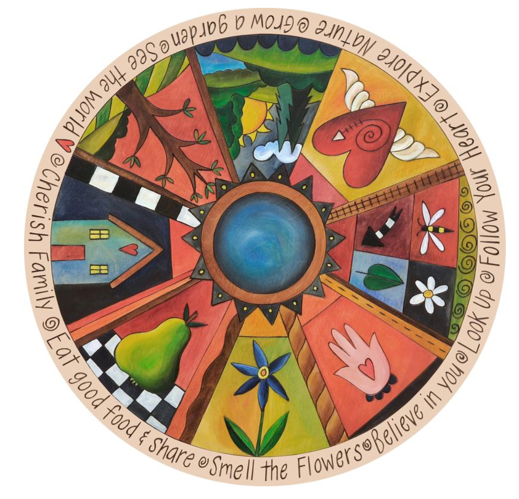 Enjoy Sticks Studio's famous patchwork style design on this inspiring lazy susan complete with the tree of life and a funky heart with wings.
