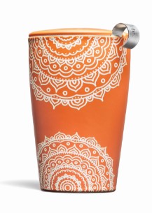 Tea Forte's double-walled ceramic tumbler and integrated stainless steel infuser make steeping loose tea by the cup simple. The innovative double-wall construction keeps the tea hot and the tumbler cozy to hold. Add the lid to your cup while steeping. When done, remove and use as a tray for your infuser basket.