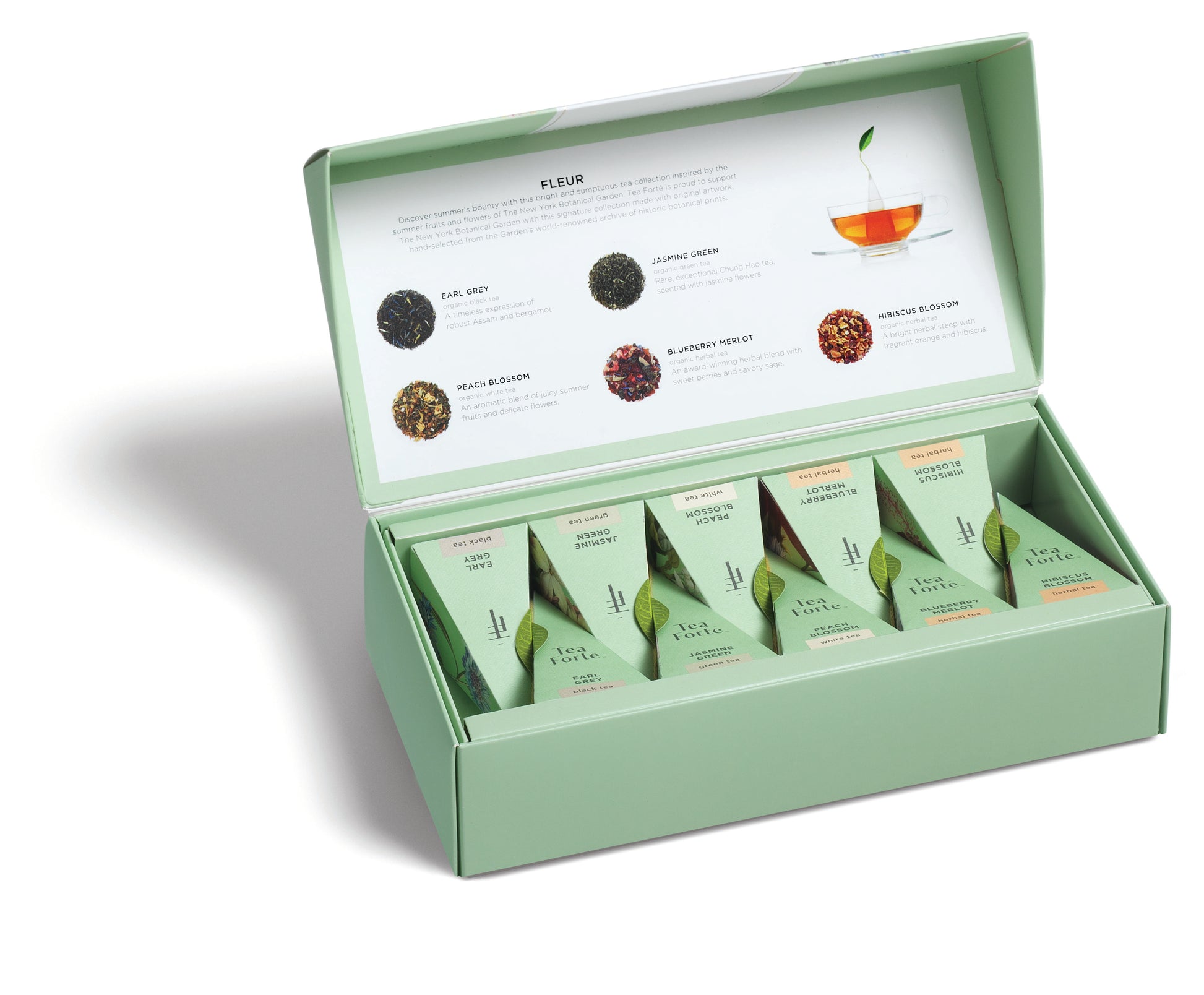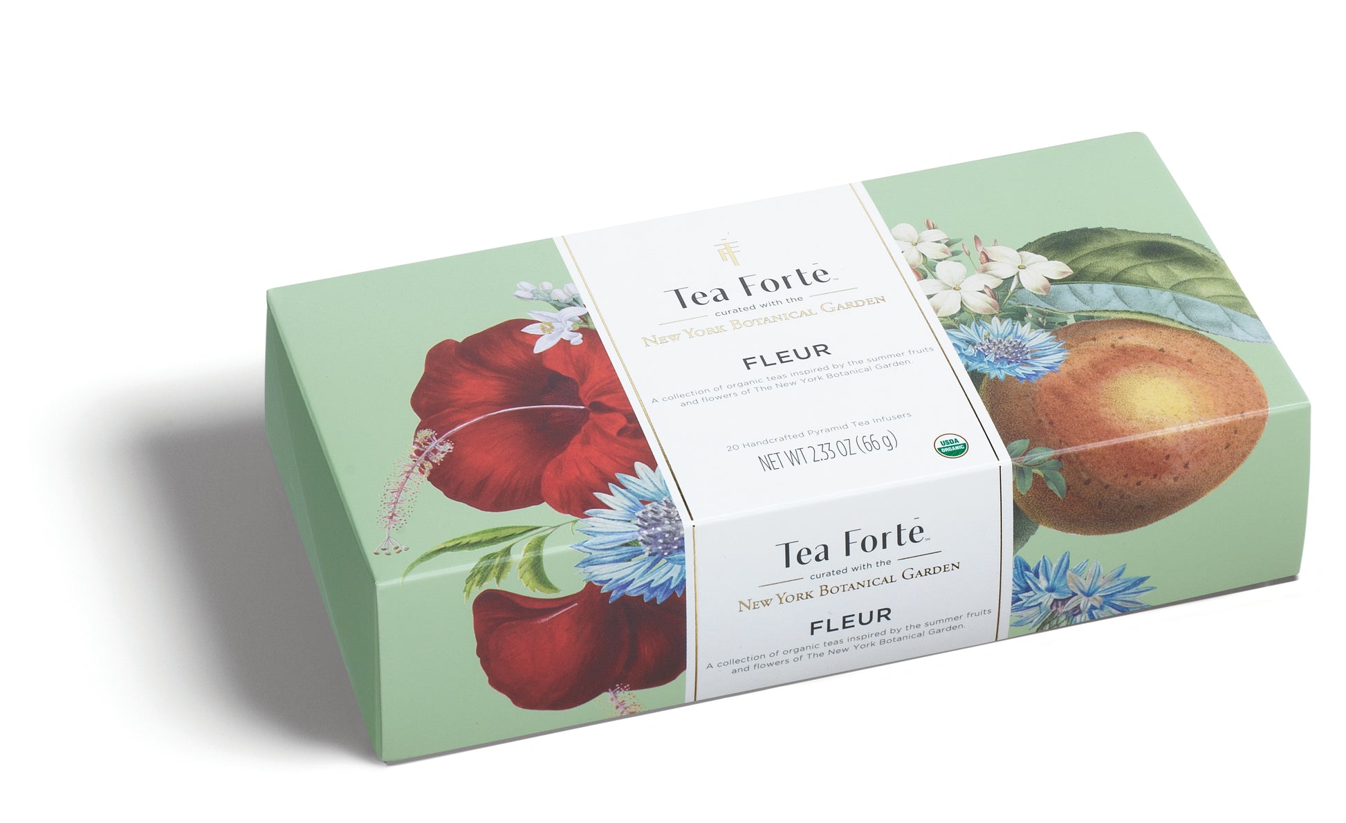 - This sampling contains 10 pyramid tea infusers, 2 of each Fleur Collection blend: Earl Grey (Black), Jasmine Green (Green), Peach Blossom (White), Blueberry Merlot (Herbal), Hibiscus Blossom (Herbal). All teas in this collection or USDA Organic Certified.