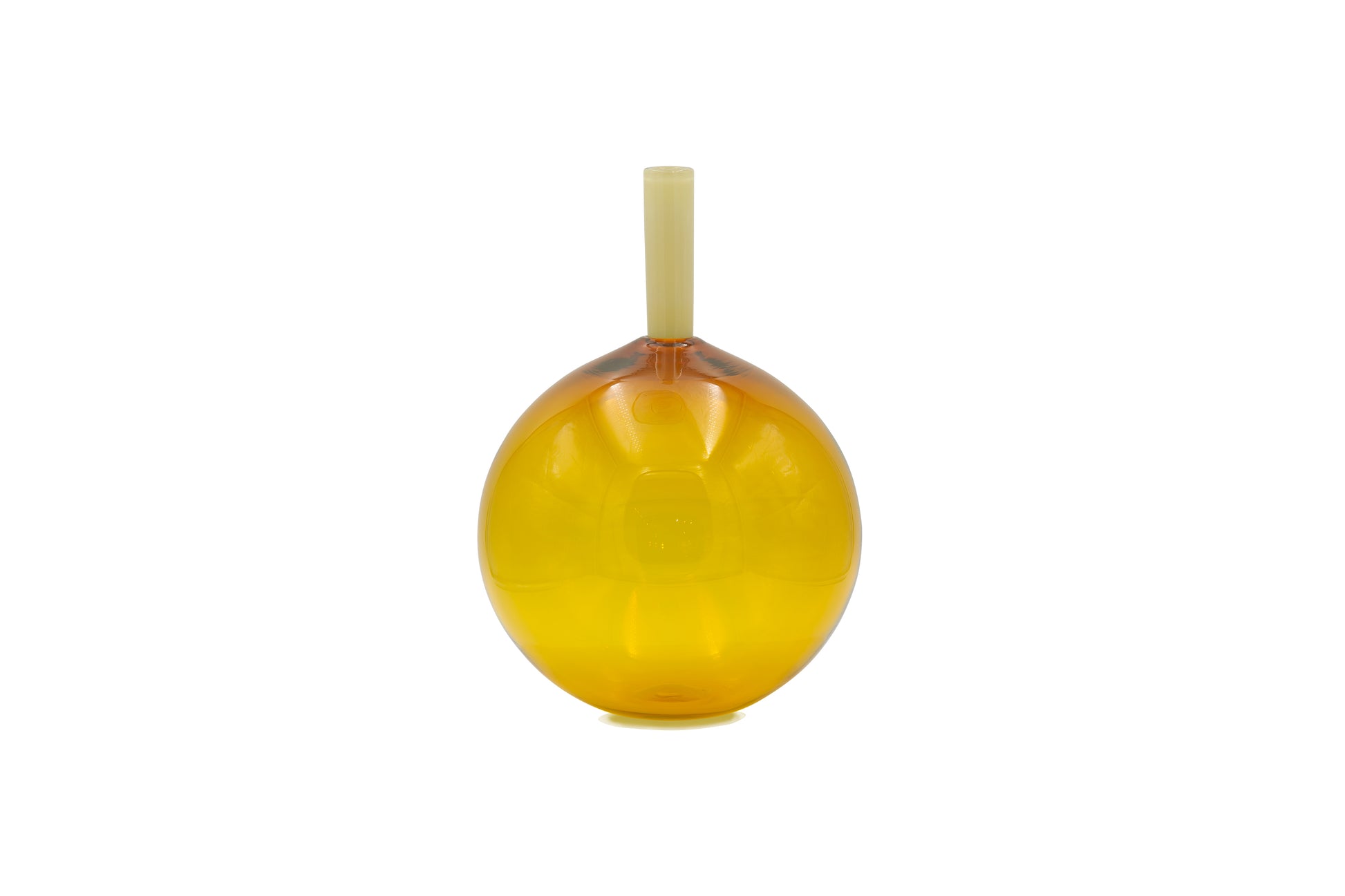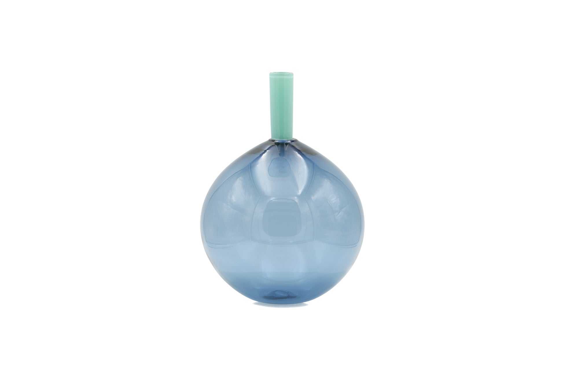 Talent and technique make a modern statement with this hand-blown geometric vase. The orb-shaped transparent glass has an opaque glass tube.